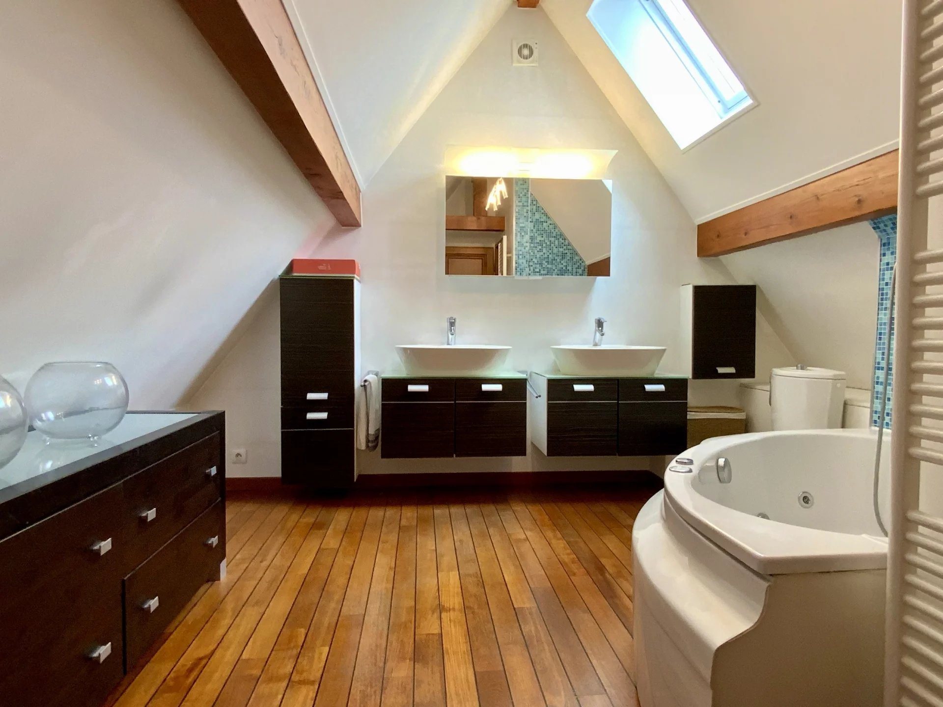 La maison dispose également d'un grand sous-sol aménagé, d'un grand garage et d'un jardin joliment arboré, avec portail électrique et piscine.