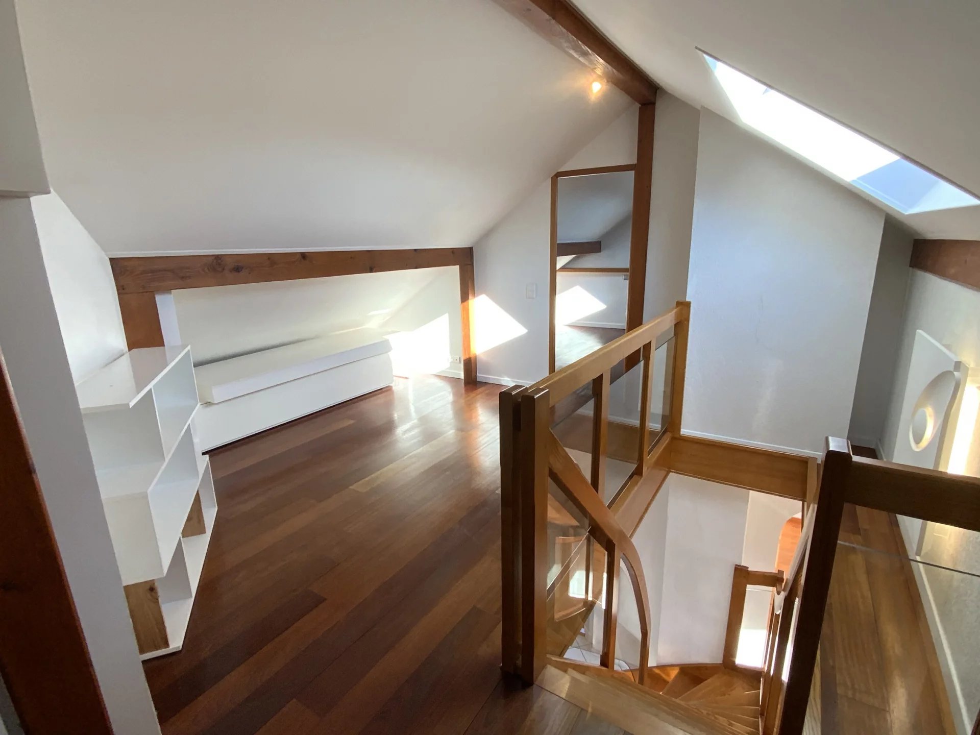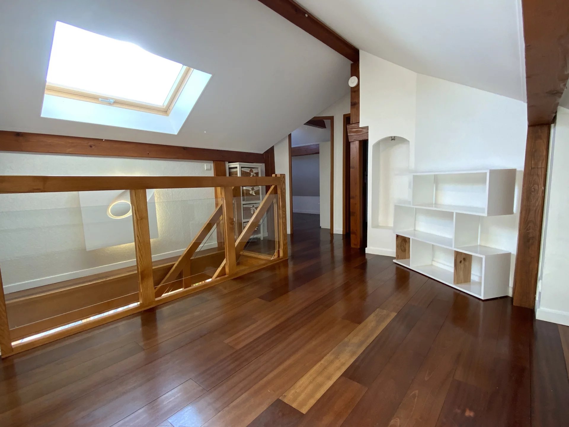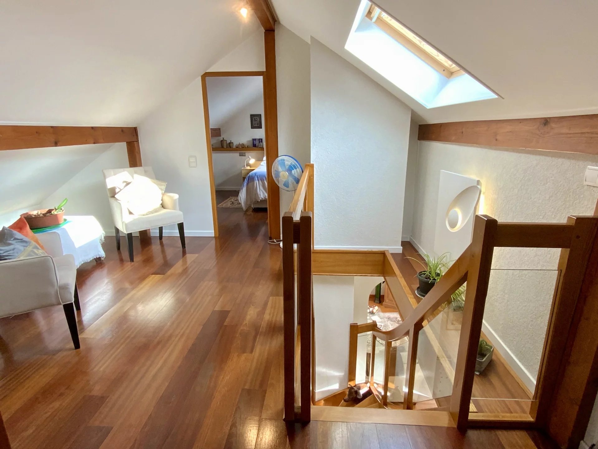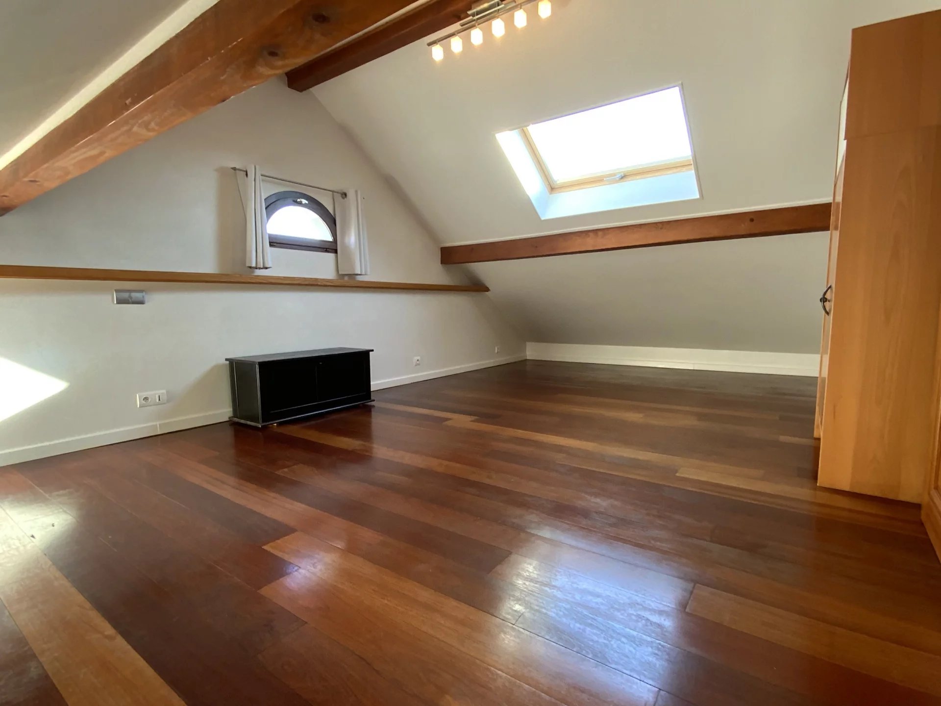 À l'étage, vous retrouverez un espace ouvert idéal pour un bureau, ainsi que deux chambres et une salle de bains.