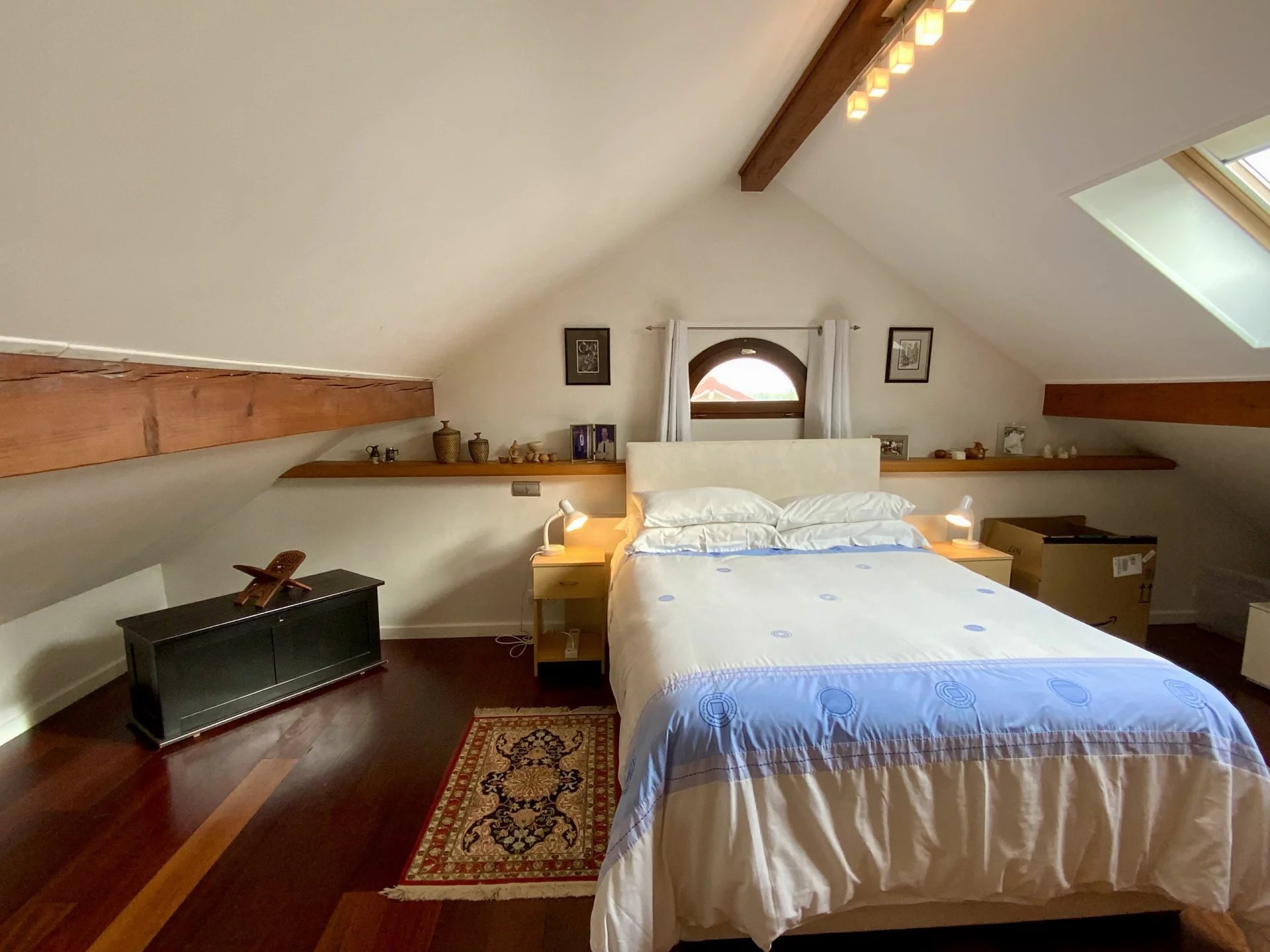 Une première chambre, une salle de bain ainsi qu'un toilette invité complètent ce niveau.