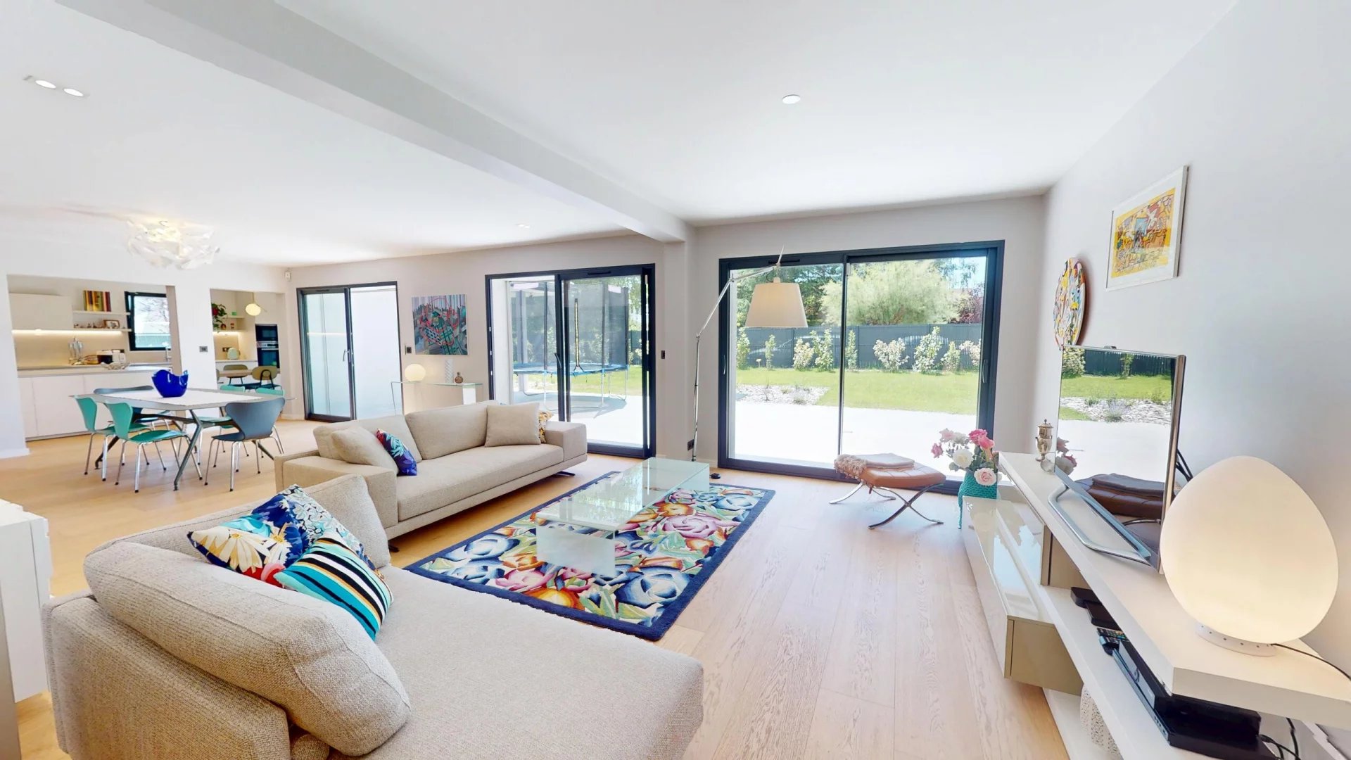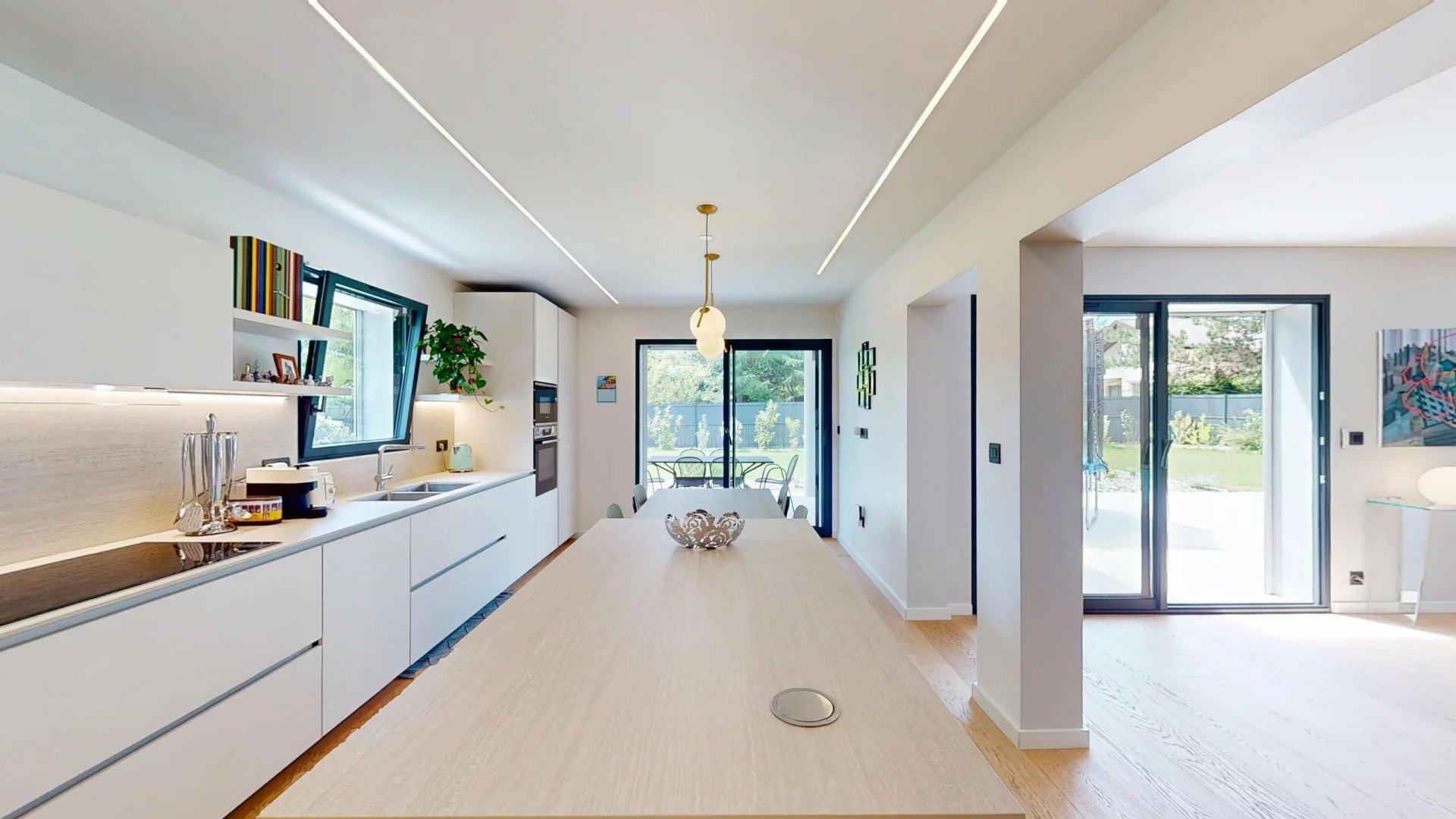 Située dans un quartier résidentiel calme, sécurisé et recherché de Prévessin-Moëns, à proximité immédiate de la frontière suisse et de Genève, cette villa contemporaine de 262 m², entièrement rénovée en 2023, offre des prestations haut de gamme et un confort de vie exceptionnel.